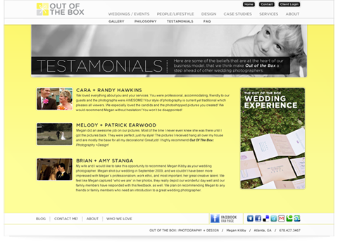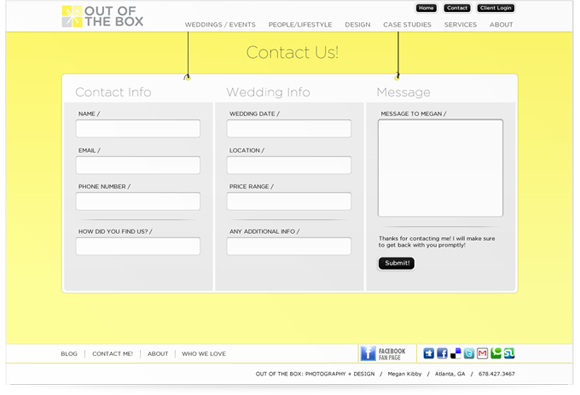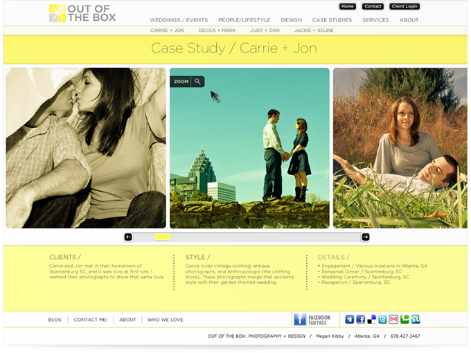 I created this site for a friend from school, Megan Kibby. When we graduated, she began dabbling in photography. One thing led to another. She now has quite the business... and for good reason. She's absolutely awesome. (On a side note, Megan photographed my sister's wedding, as shown in some of the mockups below.)