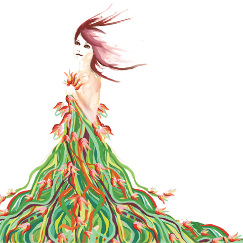 All of the graphics for this brand portray the exact moment of metamorphosis, when Daphne becomes both a woman and a tree. The bottle is shaped like an opening laurel bud, with the petal taking on the form of a woman. My print ad depicts a woman wearing a dress of flowers and vines that transforms her into a tree.